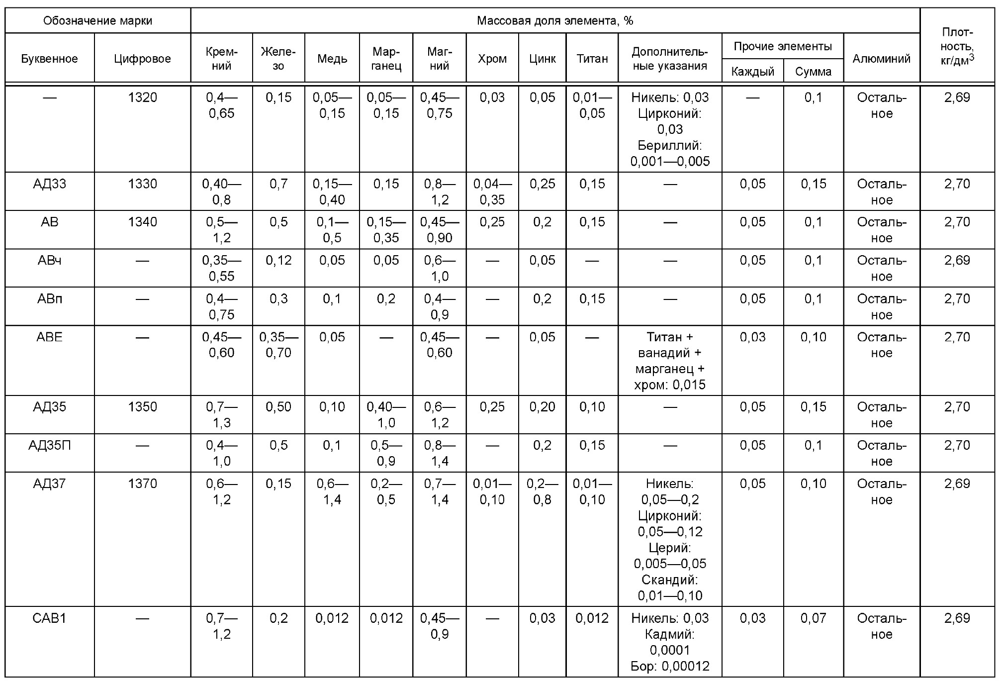 Химический состав алюминия АД35