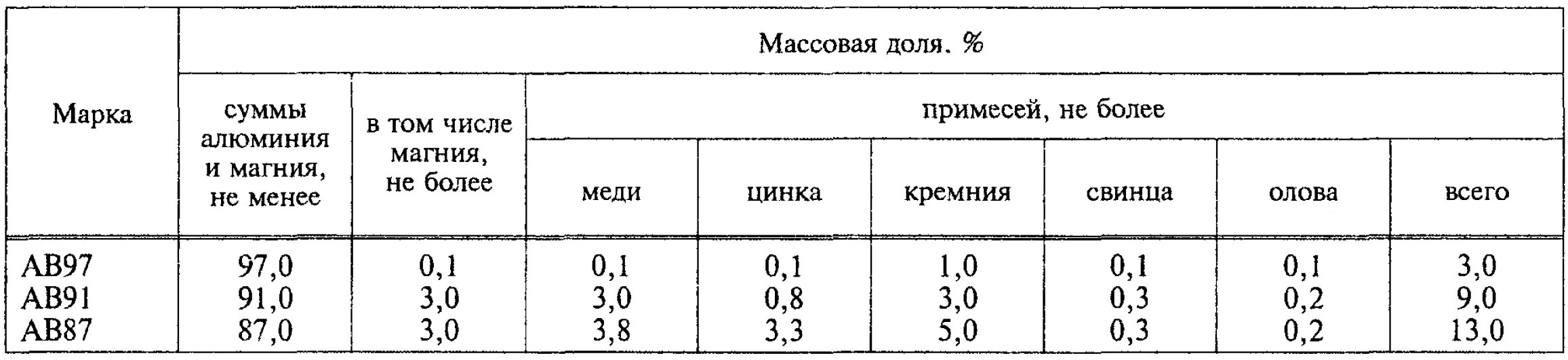 Химический состав алюминия АВ91