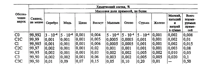 Согласно ГОСТ 3778-77, химический состав свинца С1 должен соответствовать следующим требованиям: